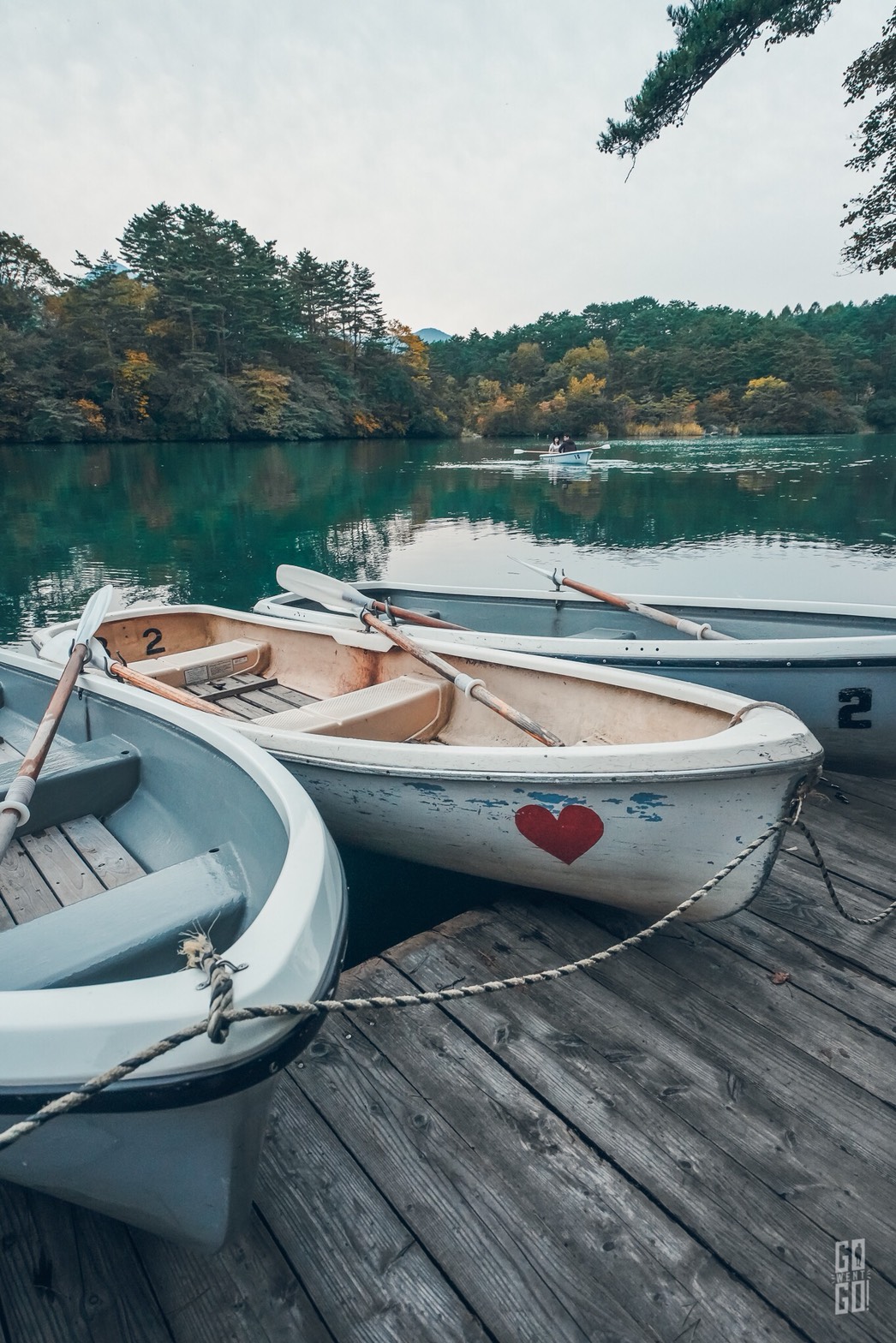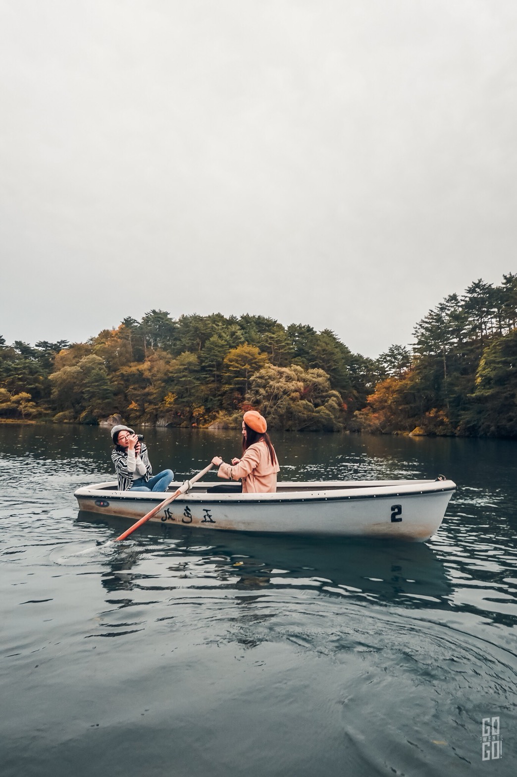 พักหายเหนื่อยกันสักหน่อย เราก็ออกเดินทางเข้าสู่จังหวัดฟุกุชิมะกัน สถานที่แรกที่เราจะไปก็คือทะเลสาบโกชิคินุมะ (Urabandai Goshiki-numa Ponds) หรือ (บึงน้ำ 5 สี) Goshikinuma นั้นมีบึงหลักๆ รวมตัวกันอยู่ถึง 9 บึง ซึ่งเป็นหนึ่งในจุดชมวิวที่ใหญ่ที่สุดของอูระบันได (Urabandai) โดยแต่ละบึงก็จะมีสีของน้ำเฉพาะตัว มีตั้งแต่สีน้ำตาลเข้ม ไปจนถึงสีฟ้าเข้ม ซึ่งสีของน้ำที่เห็นจะเปลี่ยนไปตามสภาพอากาศ ช่วงเวลา และปัจจัยอื่นๆ ที่นี่ทุกคนจะเลือกเดินหรือพายเรือรอบบึงก็ได้นะ แต่เราเลือกพายเรือ มันดูชิวกว่า(มั้ง) ฮ่าๆ ที่นี่เงียบสงบและอากาศสดชื่นมากๆ เหมาะกับการมาพักผ่อนที่แท้จริง