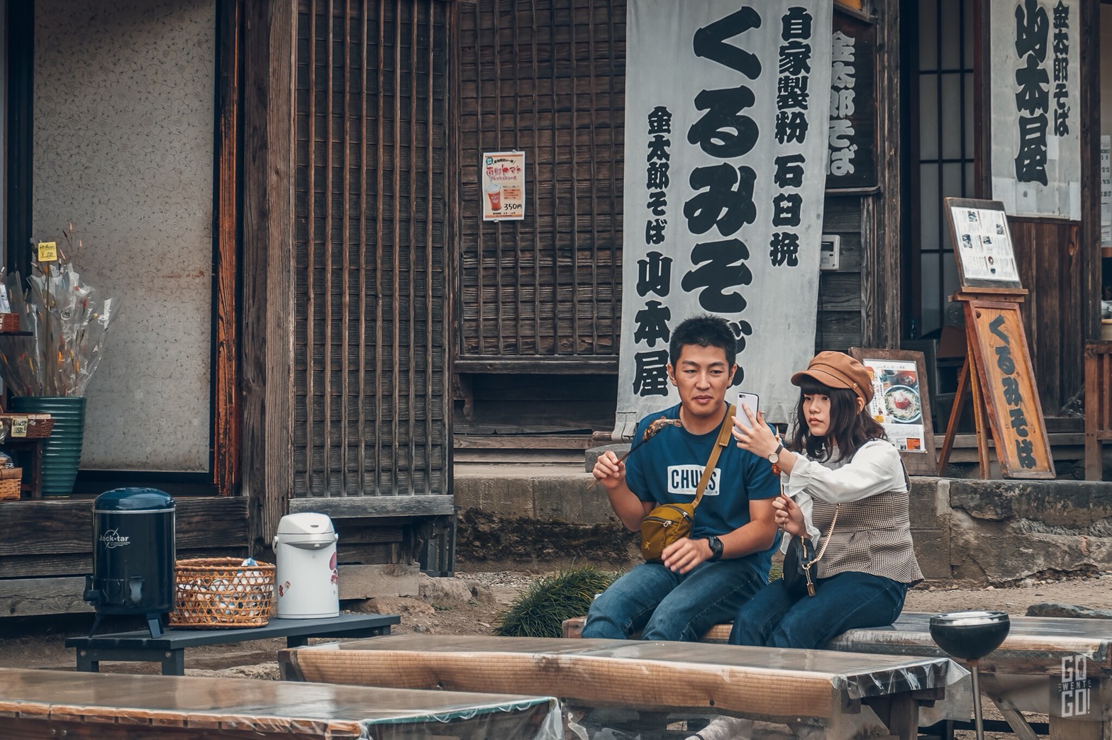 หลังจากนั้นเราไปหมู่บ้านโบราณโออุจิ จูกุกันต่อ หมู่บ้านโบราณโออุจิ จูกุทำให้เราเหมือนย้อนเวลากลับสู่สมัยเอโดะตลอดสองข้างทางทุกคนจะเห็นบ้านแบบโบราณที่เป็นบ้านชาวนาญี่ปุ่นในสมัยก่อน คือมีการมุงหลังคาด้วยหญ้าหนาๆเรียงรายตลอดสองฝั่ง ปัจจุบันหมู่บ้านกลายเป็นสถานที่สำหรับเดินเล่น ช้อปปิ้ง รวมถึงมีร้านอาหารและที่พักแบบญี่ปุ่นด้วย หมู่บ้านนี้น่ารักมาก พ่อค้าแม่ค้าก็น่ารักมาก ยิ้มแย้มต้อนรับแบบสุดๆ เราเดินเล่นถ่ายรูปกันสักพัก ก็ได้เวลามื้อกลางวันแล้ว ที่นี่ดังเรื่องโซบะมากๆ เราเลยไม่พลาดที่จะชิมสักหน่อย ร้านที่เราเลือกอยู่ต้นๆของทางเข้าหมู่บ้านเลย ทางร้านมีให้เลือกระหว่างโซบะร้อนกับเย็น บอกเลยว่าอร่อยเหาะ เส้นนุ่มยาว แต่ให้เยอะสุดๆ กินไม่หมดเลยทีเดียว อิ่มแน่นถึงเย็นกันไปเลย