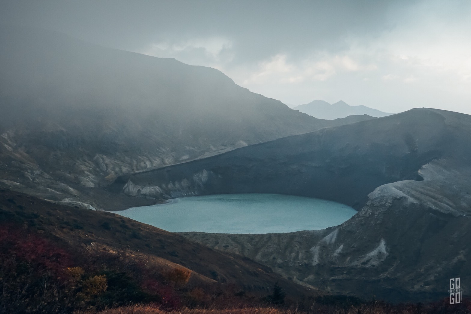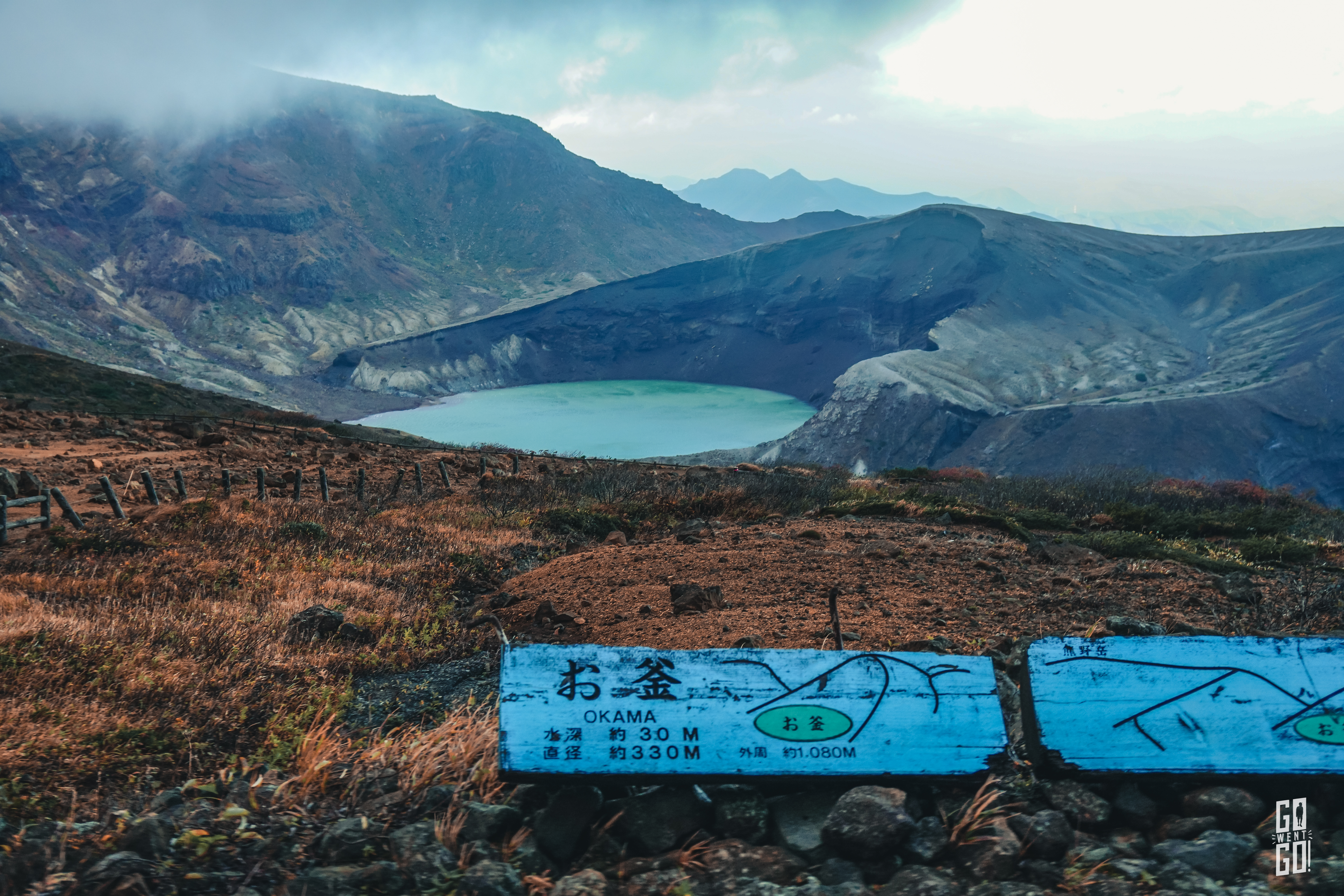 เดินเล่นกันสักพักใหญ่ๆ เราก็เดินทางไปต่อที่ปากปล่องภูเขาไฟ โอะคะมะ (Okama Crater) โดยมีระดับความสูงอยู่ที่ 1841เมตร ปล่องภูเขาไฟนี้มีลักษณะคล้ายกับหม้อใบใหญ่ที่รองรับน้ำ จึงมีชื่อเรียกว่า โอะคะมะ ที่แปลว่า หม้อ มีเส้นรอบวงวัดได้ประมาณ 1 กิโลเมตร ข้างในมีน้ำขังจนกลายเป็นทะเลสาบ น้ำมีสีเขียวมรกต ตอนที่เราขับรถขึ้นไปถึงข้างบน อุณหภูมิเปลี่ยนแปลงเร็วมาก ข้างล่าง 15องศา แต่พอเราขึ้นไปถึงข้างบนอุณหภูมิเหลือ 5องศาเท่านั้น ยังไม่พอมีลมแรงมาก!!! แรงแบบยืนอยู่ถ้าไม่ฝืนตัวเองคือตัวปลิวได้เลย แรงมากจริงๆ ปวดหูไปหมด ลมแรงแบบพีคจริงๆ แต่ข้างบนสวยมาก สวยแบบยอมเลย ยอมฝืนอดทน เห็นวิวต้องร้องว้าวเลย สวยสุดๆ ชอบที่นี่มาก