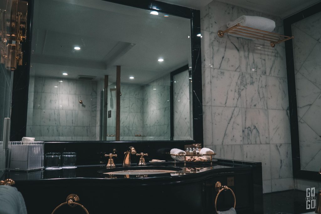 ห้องน้ำก็จะหรูไปไหนเนี่ยยยย ตกแต่งด้วยหินอ่อน สีขาวดำ ตัดทองหรูไปอีก!!!!