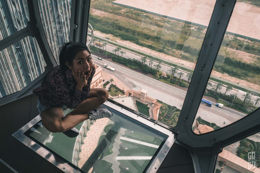 ตอนแรกไม่คิดว่าจะเสียว ชิวๆ ผ่าน Skywalk Macao tower มาแล้ว แค่นี้จิบๆ แต่พอไปยืนตรงพื้นกระจกและมองลงไปข้างล่างเท่านั้นแหละ !! โห้ยยยยยย เสียวเฉย!!!5555 ขาแอบสั่นเล็กน้อย เพราะมันสูงจริงๆครับ แต่วิวก็สวยเช่นกัน ห้ามพลาดๆ