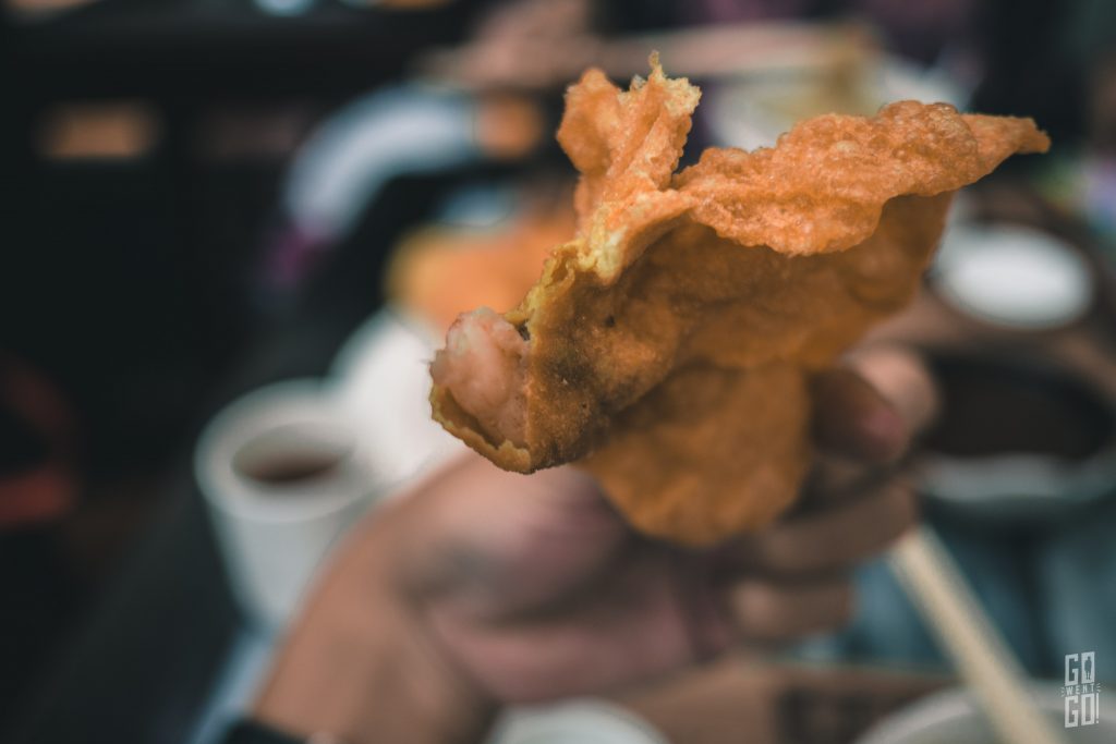 ของทานเล่น..เกี๊ยวกุ้งทอด 5 ชิ้น พอจานมาวางเท่านั้นแหละครับ มองหน้าพร้อมกันเอิ่มมมม…. จะกินหมดไหมเนี่ย ใหญ่มากกกกกก!!!