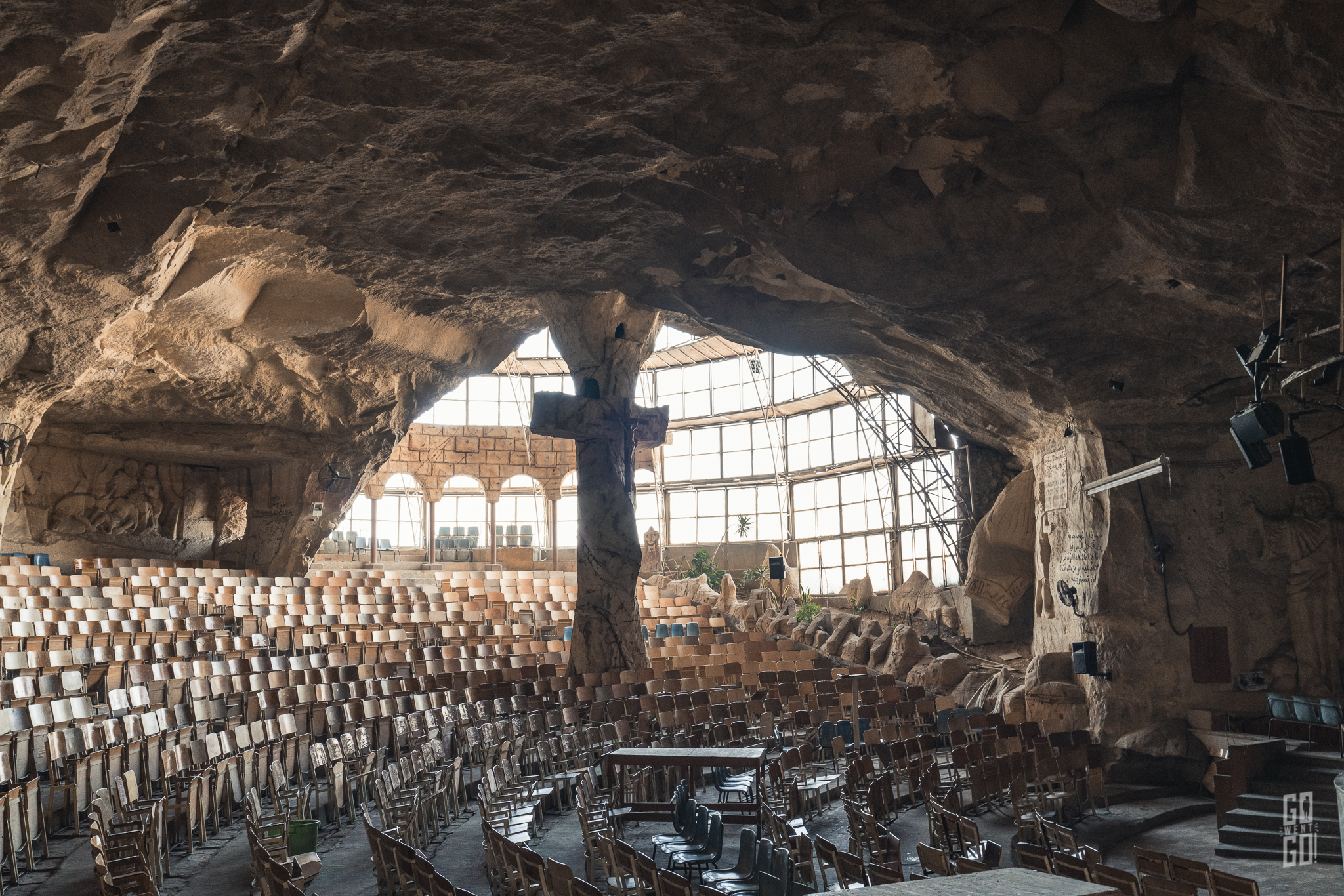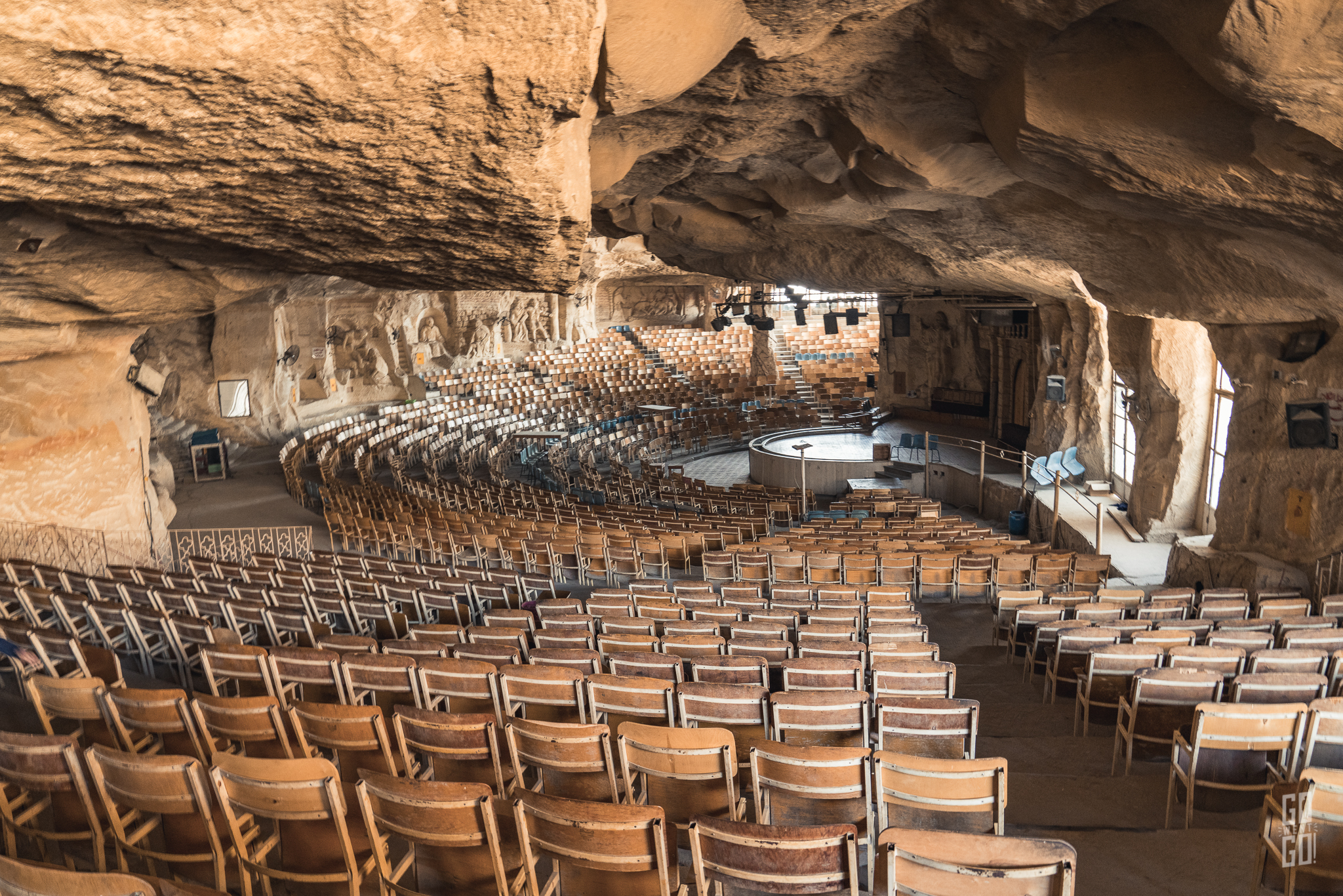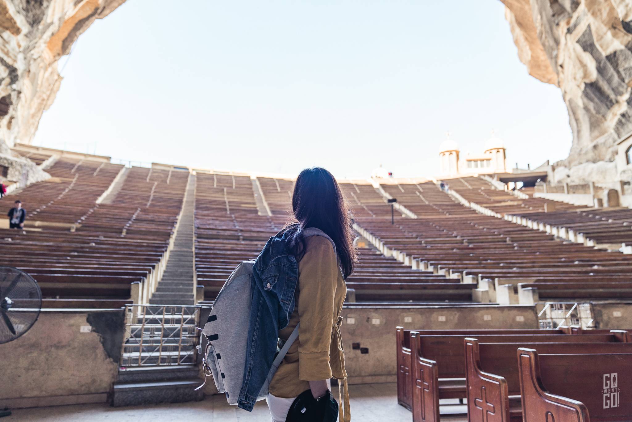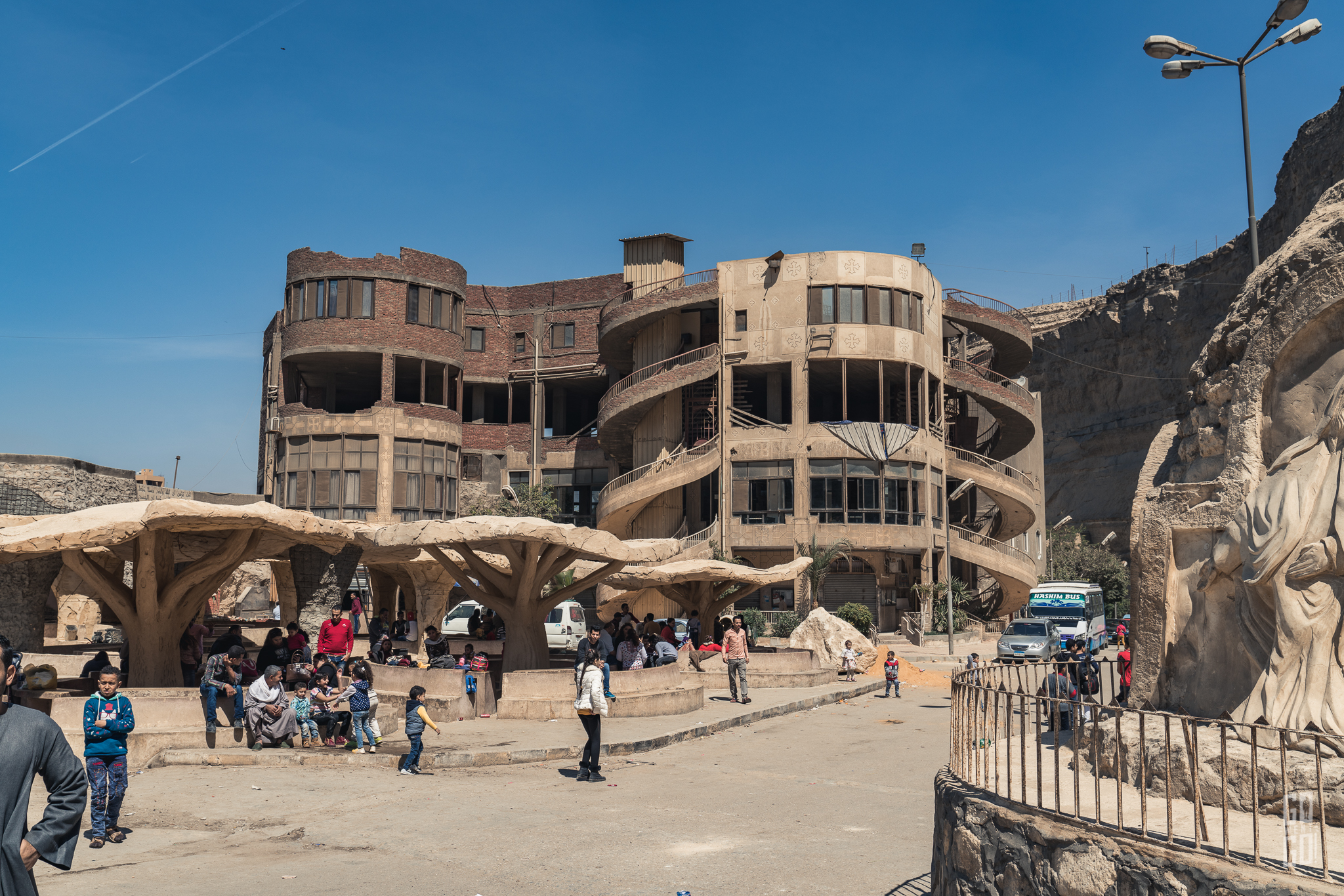 เราขับผ่าน Gabage City เพื่อไปยัง St. Simon the Tanner Cathedral เป็นการสร้างโบสถ์ไว้กลางหุบเขา แล้วก็สร้างแบบสลักภูเขาเข้าไปเลยสวยมากๆ ในอดีตที่นี่ถูกสร้างโดยบุคคลขื่อนายมาริโอ้ นายมาริโอ้เนี่ยเป็นบุคคลที่ถูกรัฐบาลส่งให้มาสำรวจสถานที่แถวนี้ เพื่อจะย้ายเมืองขยะซึ่งแต่เดิมอยู่ที่กิซ่า มาตั้งที่ไคโร ทำให้เค้าได้เจอพื้นที่ในบริเวณนี้ที่เป็นถ้ำธรรมชาติ 6 ถ้ำ และถ้ำที่เราอยู่ตรงนี้ ก็เป็นโบสถ์ที่ใหญ่ที่สุดในตะวันออกกลาง ในอียิปต์ แล้วก็ในไคโร