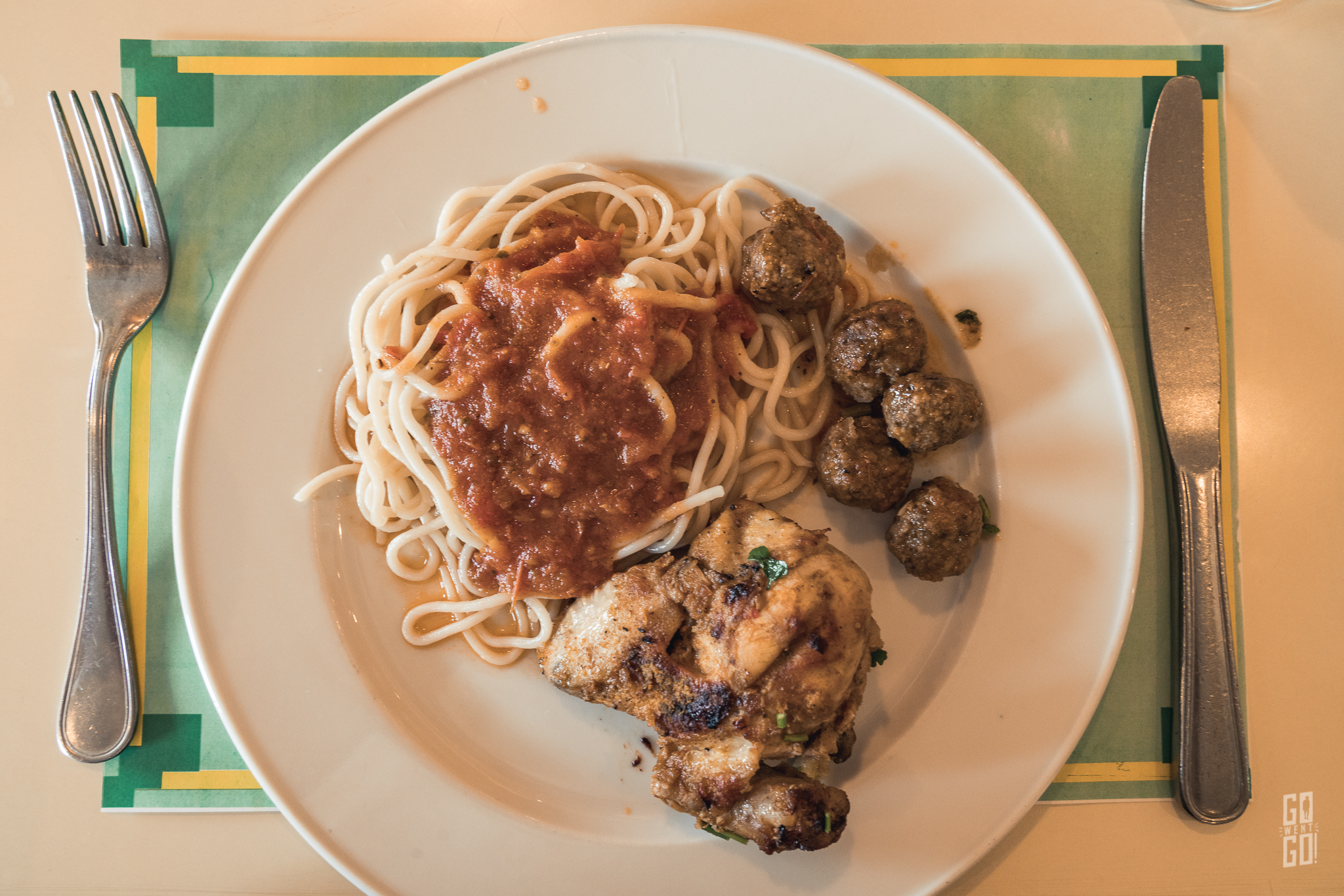 ทานอาการเที่ยงที่ร้าน international food ร้านดูดี มีฝรั่งทานเยอะ มีข้าวผัดเนย ผัก ปลา สตูเนื้อ เส้นสปาเก็ตตี้ อาหารทานได้