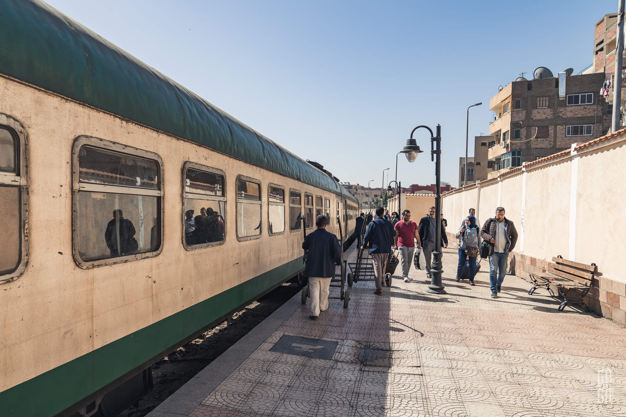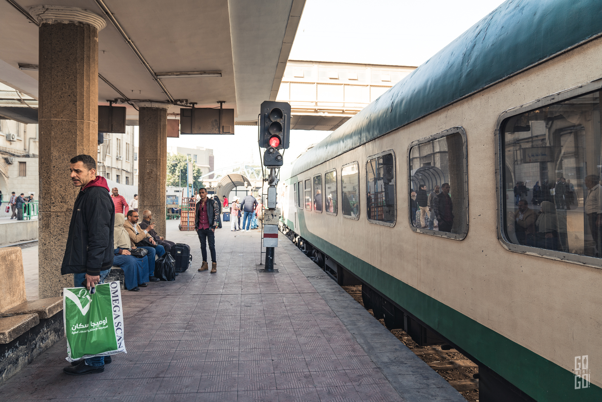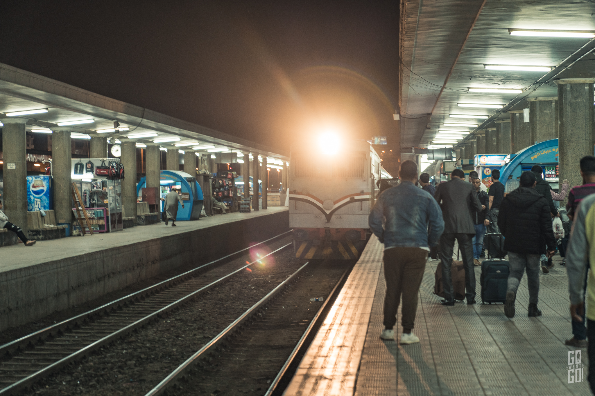 จากนั้นเราไปสถานีรถไฟกัน เพื่อออกเดินทางไปยังเมืองอัสวาน ใช้เวลาประมาณ 13 ชั่วโมง (เราจองตั๋วรถไฟจากเว็บไซต์มาเลย) ถ้าดูตามแผนที่อัสวาน จะอยู่ทางตอนใต้สุด แต่คนที่นี่ดันเรียกว่าอียิปต์เหนือ เพราะเค้านับแม่น้ำไนล์ของอียิปต์เป็นหลัก ซึ่งแม่น้ำไนล์ก็ดันไหลจากล่างขึ้นบน เลยถือว่าอัสวานเป็น Upper Egypt และไคโรเป็น Lower Egypt ซึ่ง Lower Egypt จะมีพวกพีรามิด แต่ฝั่ง upper เป็นตัวอักษร รถไฟที่เรานั่งไปเป็นตู้นอน แพงที่สุดของอียิปต์ ราคา 2,500 นั่งไปกลับก็คนละ 5,000 แต่ก็ถือซะว่าแทนค่าโรงแรม