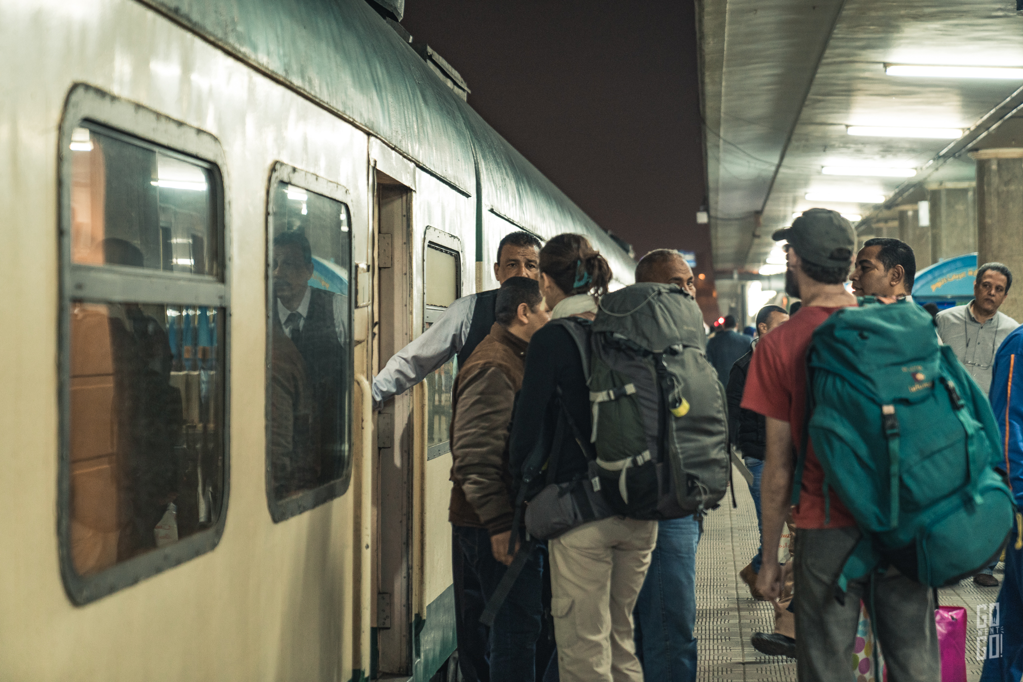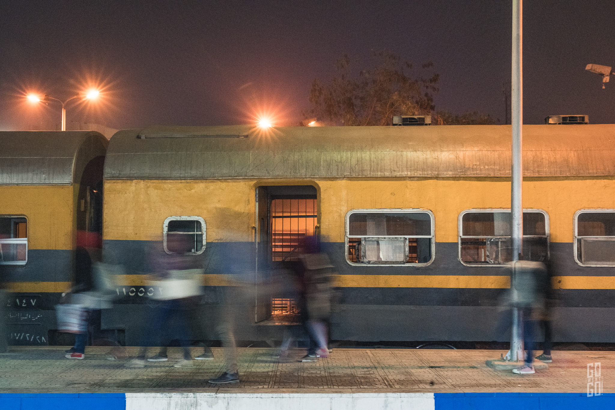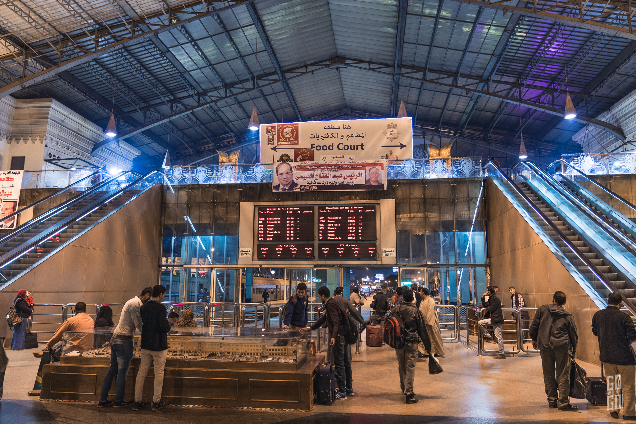 จากนั้นเราไปสถานีรถไฟกัน เพื่อออกเดินทางไปยังเมืองอัสวาน ใช้เวลาประมาณ 13 ชั่วโมง (เราจองตั๋วรถไฟจากเว็บไซต์มาเลย) ถ้าดูตามแผนที่อัสวาน จะอยู่ทางตอนใต้สุด แต่คนที่นี่ดันเรียกว่าอียิปต์เหนือ เพราะเค้านับแม่น้ำไนล์ของอียิปต์เป็นหลัก ซึ่งแม่น้ำไนล์ก็ดันไหลจากล่างขึ้นบน เลยถือว่าอัสวานเป็น Upper Egypt และไคโรเป็น Lower Egypt ซึ่ง Lower Egypt จะมีพวกพีรามิด แต่ฝั่ง upper เป็นตัวอักษร รถไฟที่เรานั่งไปเป็นตู้นอน แพงที่สุดของอียิปต์ ราคา 2,500 นั่งไปกลับก็คนละ 5,000 แต่ก็ถือซะว่าแทนค่าโรงแรม