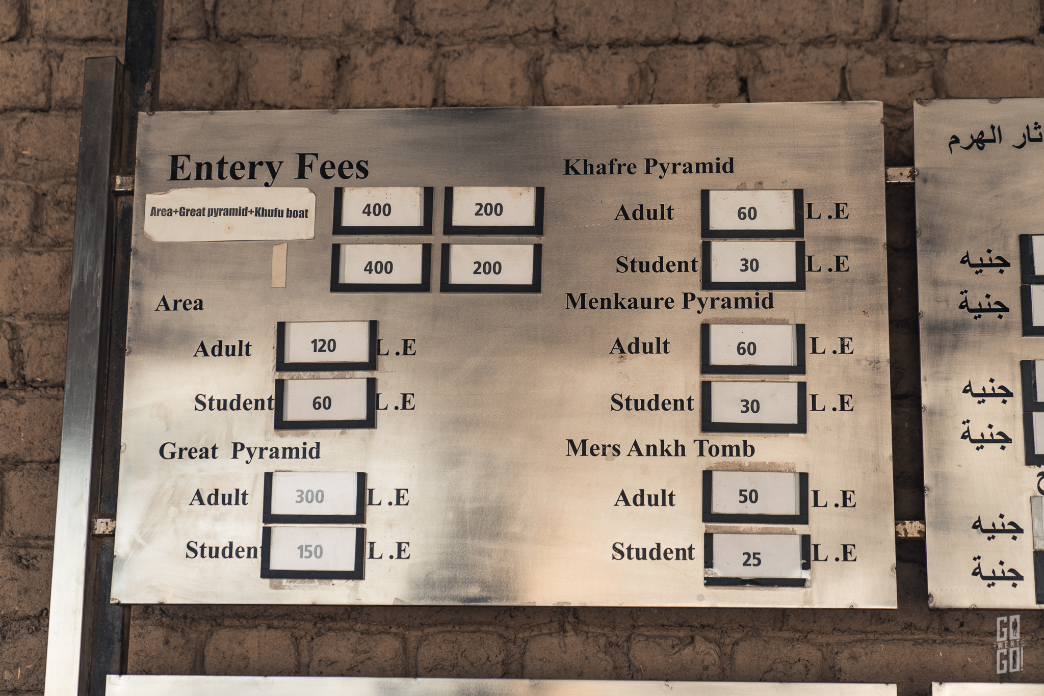 เมื่อทานอาหารเรียบร้อยแล้ว เวลาของการตะลุยอียิปต์ก็มาถึง ถึง ถึง… เราเหมาทัวร์ไปดูพีระมิดที่ราคา 82 USD ต่อมาจาก 105 USD (ราคานี้รวมไกด์ท้องถิ่น อาหารเที่ยง ค่าขี่อูฐ ค่าเข้าชมพีระมิด ค่าพาไปเที่ยวเมืองซัคคาร่า และเมืองเมมฟิสหมดแล้ว)