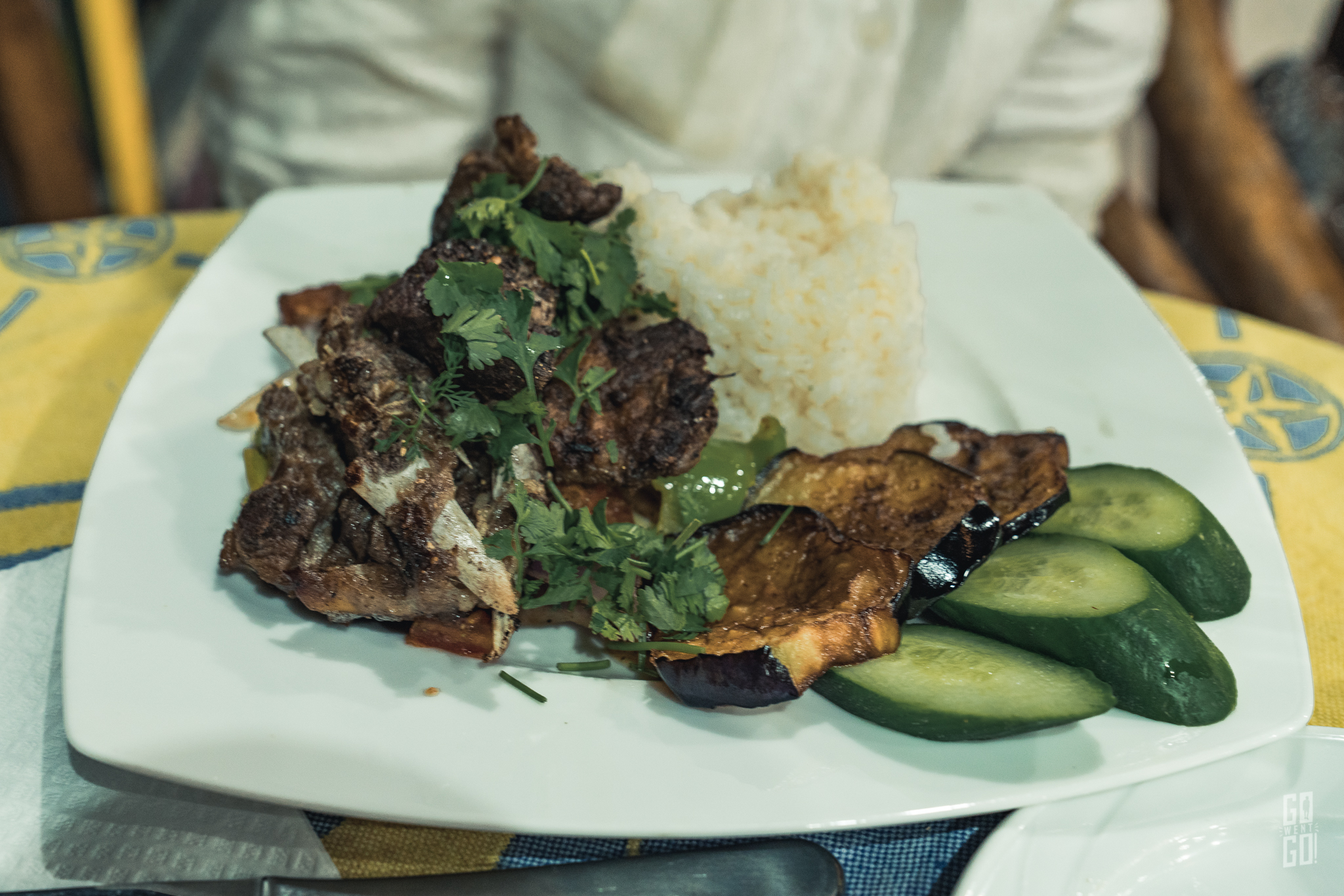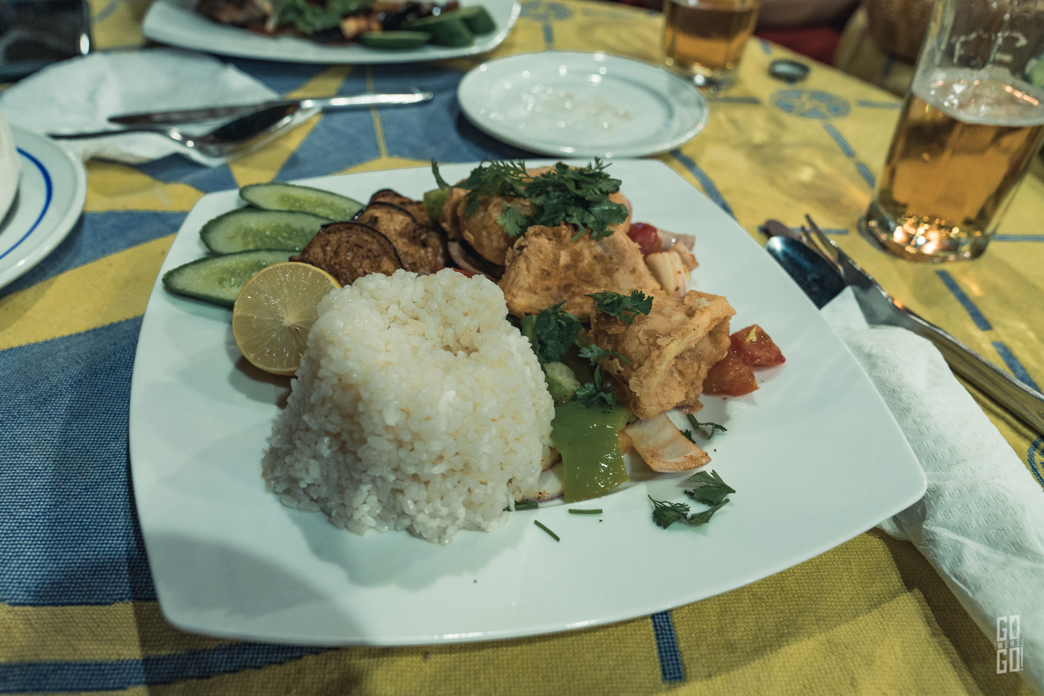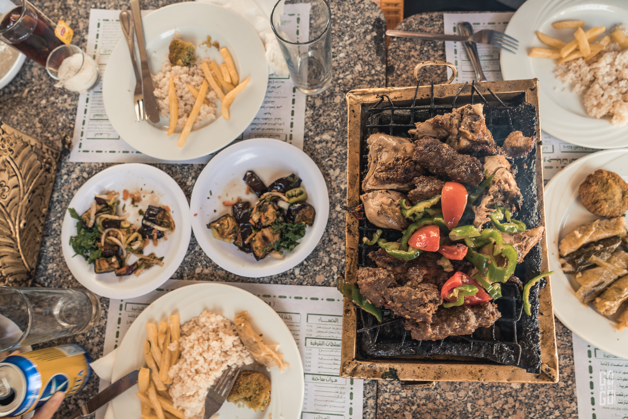 พักทานอาหารเที่ยงที่รวมอยู่ในค่าทัวร์กันก่อน ที่ร้าน Alezba Village ร้านอาหารสวย คลาสสิกมาก แต่เมนูก็อ่านไม่ออกเลย แต่คิดว่าไม่เป็นไรหรอก เดี๋ยวไกด์ก็สั่งให้เอง ของเด็ดของร้านนี้คือมีไก่ย่างอร่อย รอดตายไปหนึ่งมื้อแล้ว เย้!