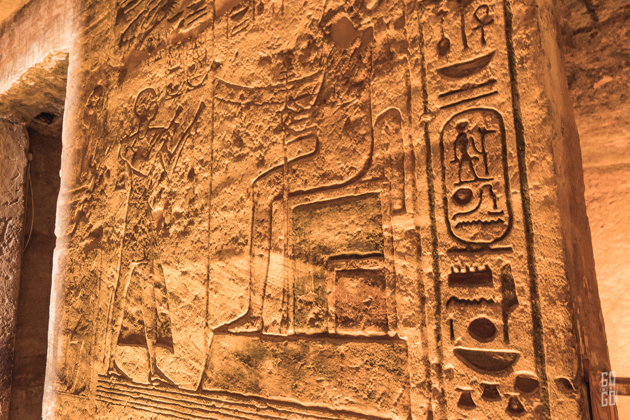 ที่นี่นอกจากการสลักและสร้างวิหารในภูเขาทั้งลูกแล้วที่น่าทึ่งแล้ว แต่เดิมวิหารไม่ได้ตั้งอยู่ตรงนี้ แต่เพราะการสร้างเขื่อน High Dam ทำให้ระดับน้ำของแม่น้ำไนล์สูงขึ้นและอาจจะท่วมวิหารได้ จึงมีการย้ายทั้งวิหารมายังที่ที่อยู่ปัจจุบัน วิธีการย้ายก็คือตัดวิหารเดิมให้เป็นก้อนหิน เป็นก้อนๆ แล้วจะย้ายหินทีละก้อนๆ มาวางในตำแหน่งเดิม แต่ละก้อนก็เลยจะมี หมายเลข หรือมีรอยสลักเหมือนบอกว่าก้อนไหนอยู่ตรงไหนนั่นเอง (เหมือน Philae Temple) บอกได้คำเดียวว่าอะเมซิ่งมากจ้า