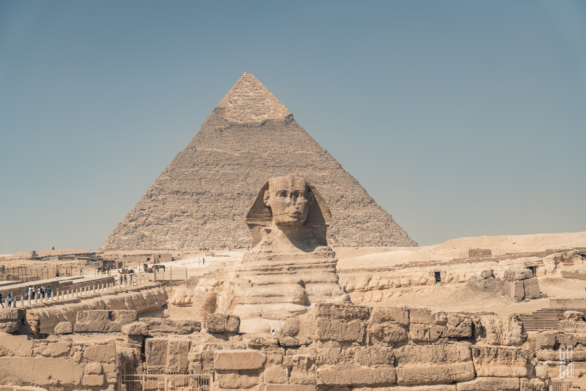 ต่อมาเราจะไปดูมหาสฟิงซ์กัน (The Great Sphinx of Giza) คือ รูปสฟิงซ์แกะสลักด้วยหินขนาดใหญ่ เป็นสฟิงซ์ที่มีขนาดใหญ่ที่สุดในอียิปต์ อยู่ในบริเวณพีระมิดทั้ง 3 แห่งกิซีา หมอบเฝ้าอยู่ใกล้กับพีระมิดคาเฟร (พีระมิดที่อยู่ตรงกลางนั่นเอง) เชื่อกันว่าใบหน้าของมหาสฟิงซ์ จำลองมาจากใบหน้าของฟาโรห์คาเฟร มีลำตัวเป็นสิงโต หางเป็นงู และมีปีกเหมือนนกอินทรีย์ เอาไว้เปรียบเสมือนเทพเฝ้าสุสานและสมบัติที่อยู่ข้างใน