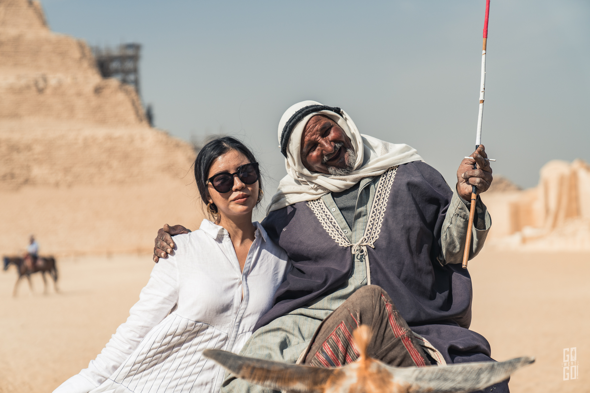 ไปจุดต่อไป ไปขี่อูฐ และเป็นจุดถ่ายรูป ที่จะได้ภาพทั้ง 9 พีรามิด ตอนลงจากอูฐก็จะมีคนท้องถิ่นมาชวนพูดคุย และให้ของมาเต็มเลย เค้าก็บอกว่าให้ฟรี! สุดท้ายก็จะมาขอเงิน เอ้า? ถ้าใครมาก็ต้องระวังตัวดีๆ