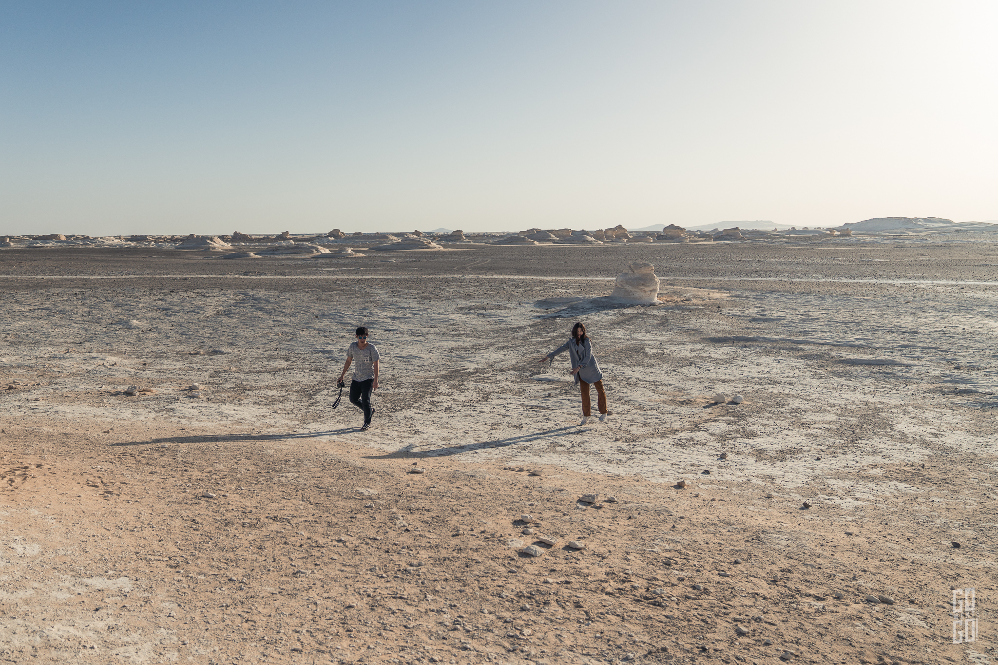 แล้วก็มาต่อกันที่ White Desert ที่อยู่ใกล้ๆกัน ทรายในบริเวณนี้มีส่วนของหินปูนสีขาวประกอบอยู่ ก็เลยเป็นทรายสีขาวอย่างที่เห็นกัน และเป็นที่มาของชื่อ White Desert ด้วย