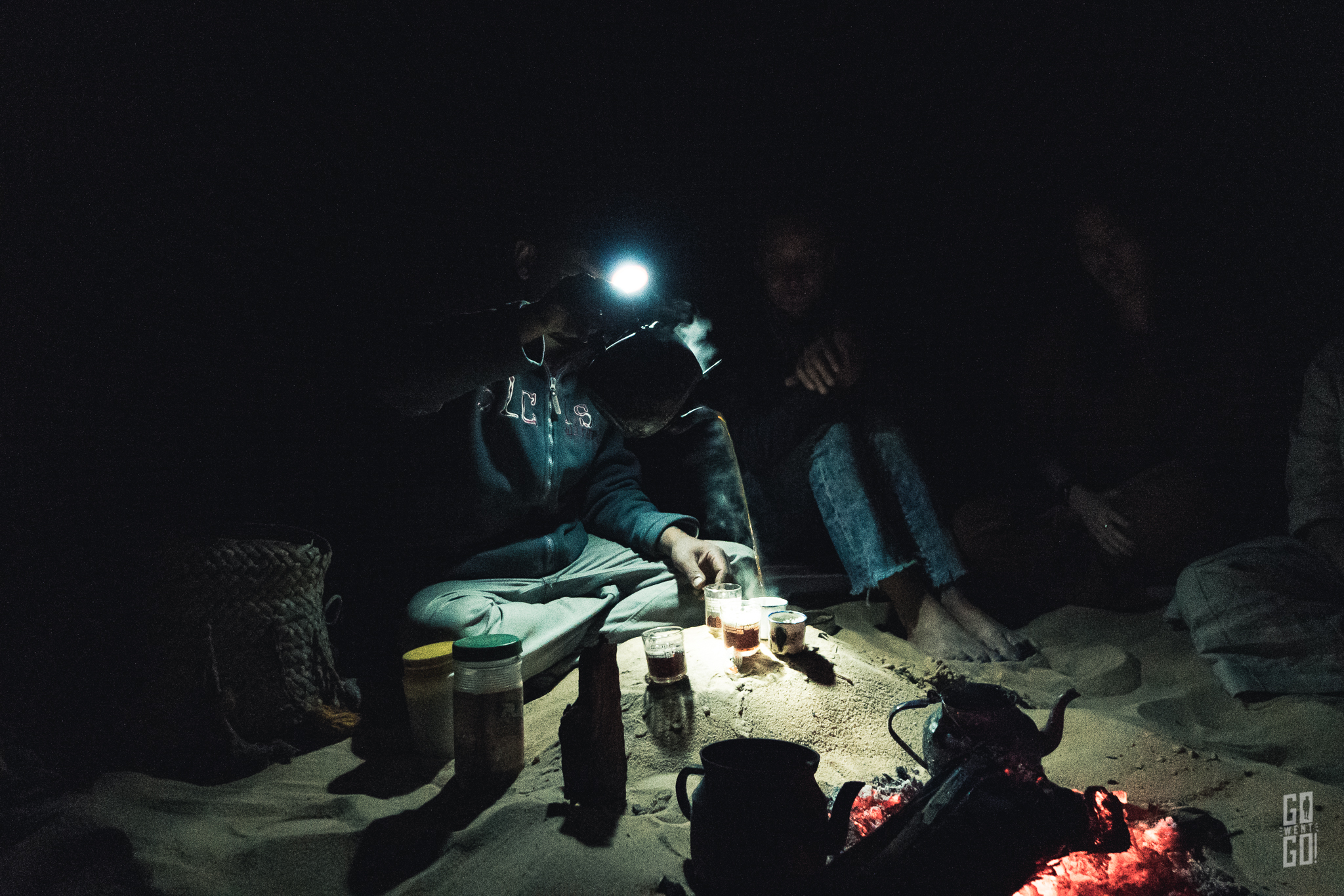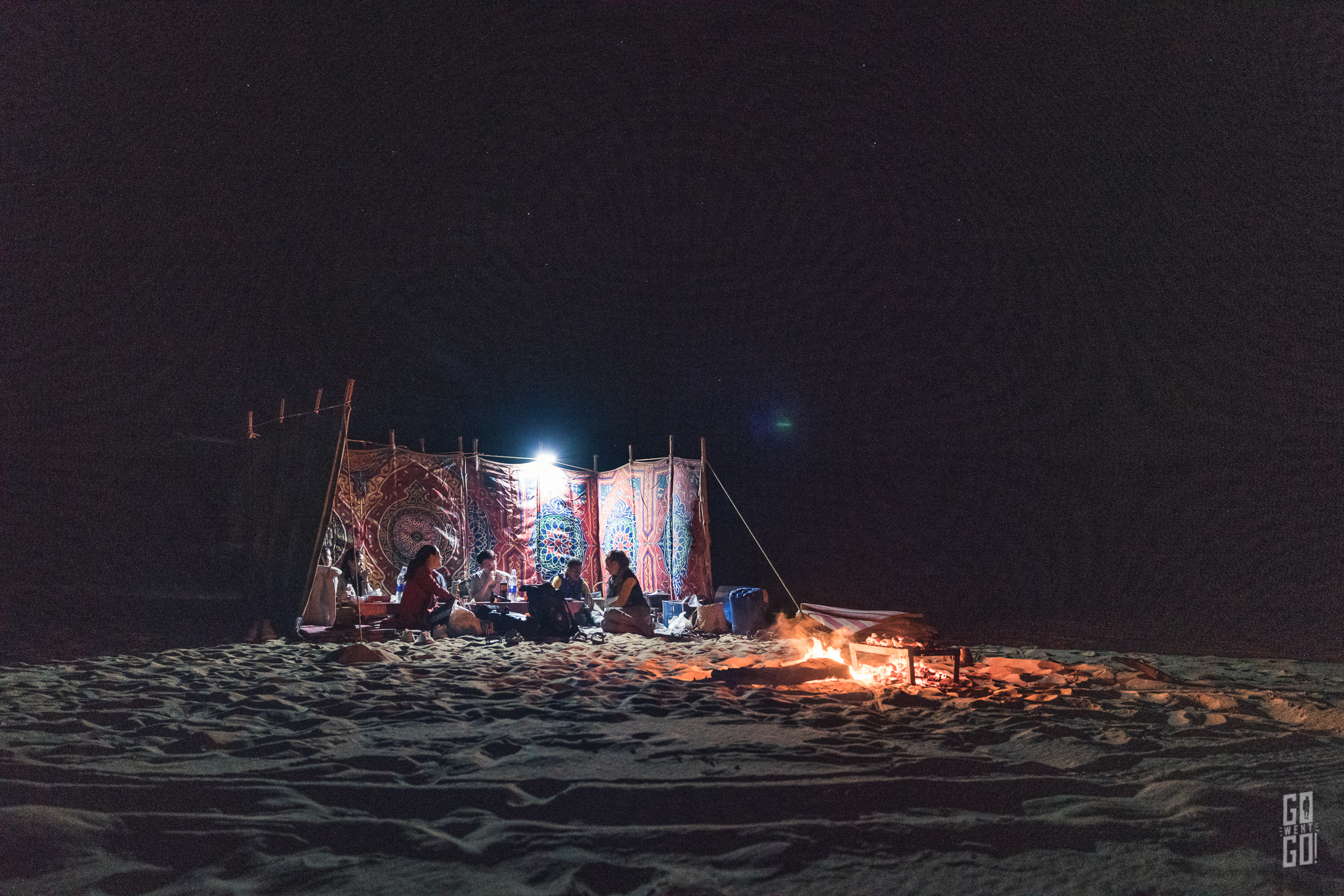 จากนั้นเราก็จะเข้าไปนอนในทะเลทรายกัน เย้ๆๆๆ อาหารเย็นเค้าก็จะทำให้เรากินกลางทะเลทรายเลยด้วย ถือว่าเปิดประสบการณ์ใหม่มากๆ ทานอาหารเสร็จก็จะมีเหมือนกิจกรรมรอบกองไฟกันเล็กน้อย พอหอมปากหอมคอก่อนเข้านอน