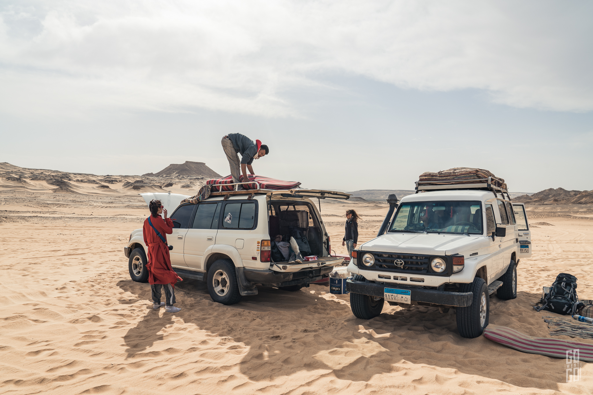 เช้าวันที่ 2 วันนี้เราจะออกเดินทางเพื่อไปนอนกลางทะเลทรายกัน! แต่มีการฝากกระเป๋าไว้ที่โรงแรมนะ เอาของไปแค่บางส่วนเท่านั้นจ้า ซึ่งเราก็จะใช้วิธีการจ้างไกด์ท้องถิ่นอีกเหมือนเดิม ราคา 2,470 EGP คิดเป็นเงินไทยก็ประมาณ 5,000 บาท โดยการซื้อทัวร์ล่วงหน้าทาง Internet