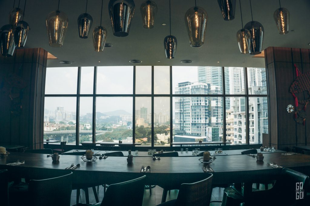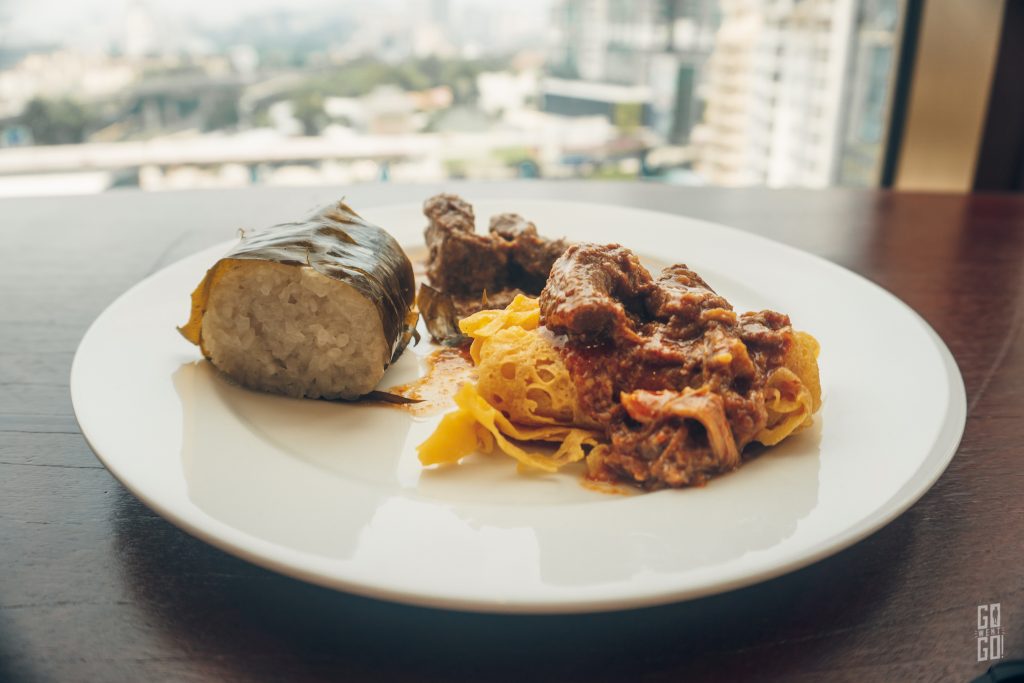 ด้วยความหิวโหย และสะดวกรวดเร็ว เราเลือกทานอาหารเที่ยงที่ห้องอาหารของโรงแรมกันเลย ชื่อว่า “Kampung Kitchen” เป็นห้องอาหารที่ตกแต่งสไตล์บ้านมาเลแบบดั้งเดิม (หรือที่เรียกว่า Kampung) ผสมโมเดิร์นจ้า เพราะล้อมรอบไปด้วยกระจกใส มองเห็นวิวเมืองกัวลาลัมเปอร์เล้ยยยยย