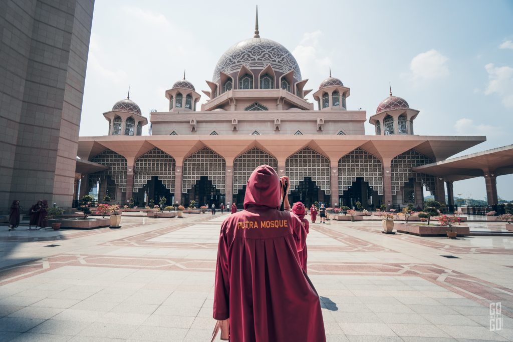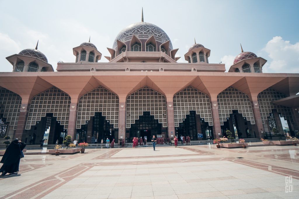 จาก Palace of Justice เราก็จะเรียก Grab Car เหมือนเดิมค่ะ สถานที่ถัดไปของเราคือ Putra Mosque หรือมัสยิดสีชมแห่งปุตราจายานั่นเอง *มัสยิดแต่ละที่ชุดคลุมก็จะสีแตกต่างกันไปค่ะ ที่นี่ก็เข้าได้ช่วง 14.00-16.00 เหมือนกันนะ