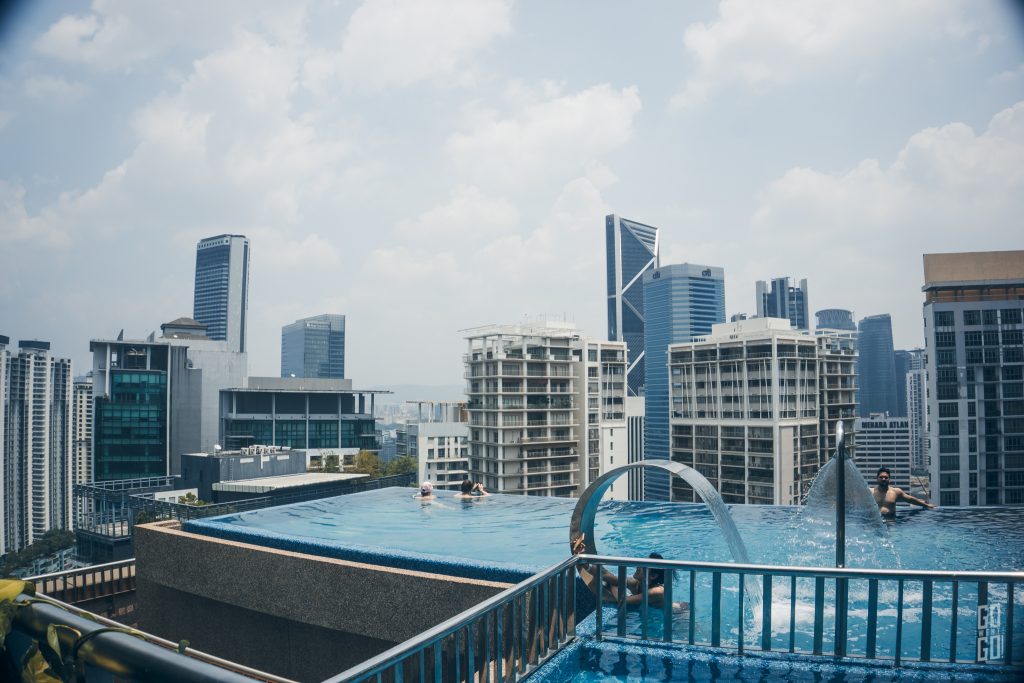 บอกได้คำเดียวว่า Relax สุดๆ ชิวมาก มาตอนเช้าแดดไม่แรง ว่ายน้ำไปชมวิวไป หรือใครจะอยากมาลองว่ายน้ำช่วงเย็นแทนก็ได้ เพราะก็น่าจะสวยไปอีกแบบนะคะ เห็นวิวเมืองกัวลาลัมเปอร์และตึก Petronas Twin Tower ยามค่ำคืน หลังจากว่ายน้ำเสร็จแล้ว เราก็กลับขึ้นมาอาบน้ำแต่งตัว พร้อมที่จะออกเดินทางกันต่อ ส่วนแพลนต่อไปของเราวันนี้คือนั่งรถไปที่เมืองปุตราจายา