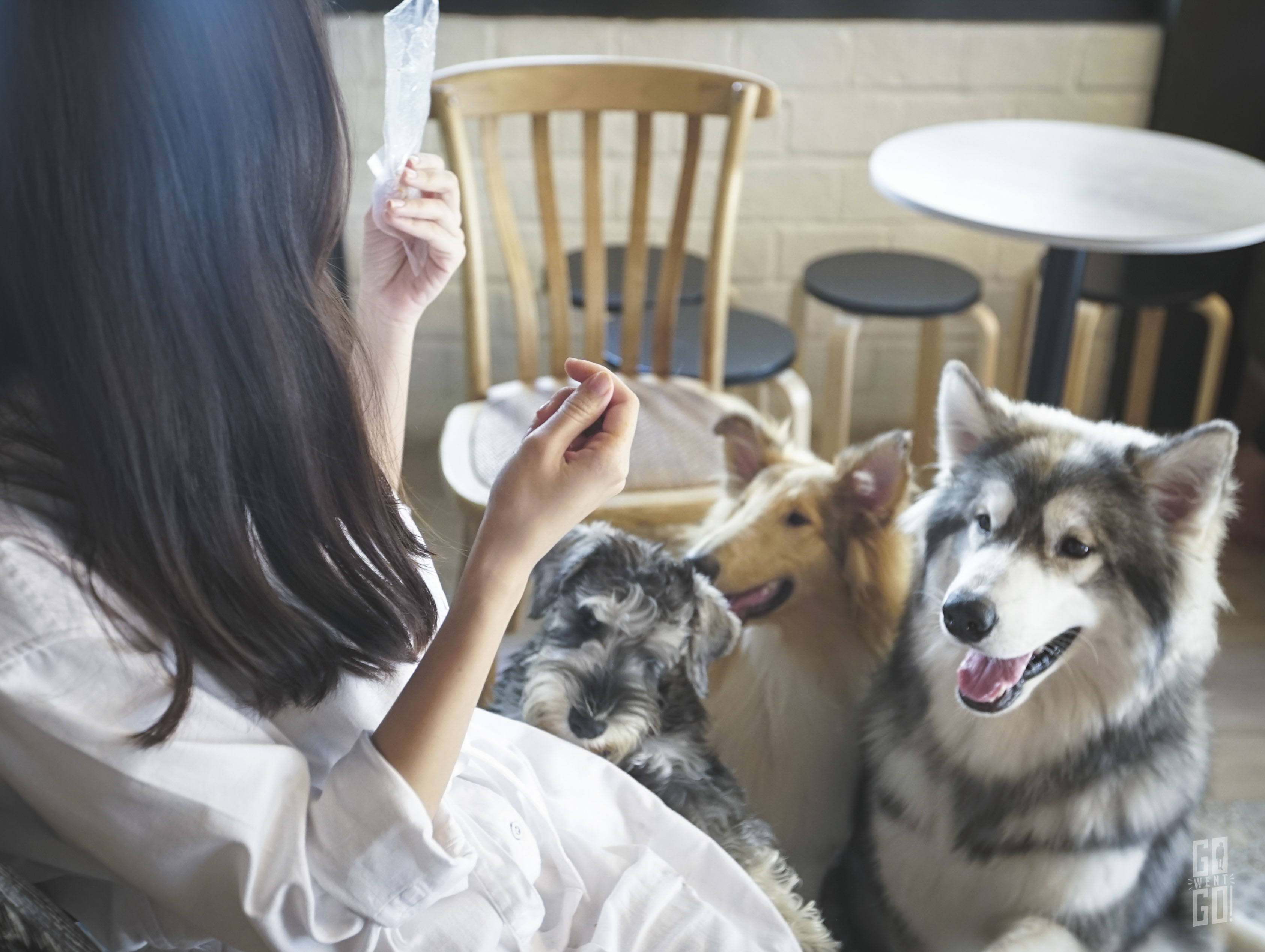 แต่จุดพีคคือตอนที่น้องหมาตื่นเพราะเวลาตื่น ตื่นทั้งร้านนน!!วุ่นวายมากกกก วิ่งไปวิ่งมา อารมเหมือนเรา พาลูกๆหลานๆไปปล่อยสวนสนุกเปลี่ยนจากสงบเป็นความป่วนทันที และพอดีถ้ามี ลูกค้าพาหมาตัวอื่นมาพวกท่าน จะลุกขึ้นวิ่งไปหา ประหนึ่ง เจ้าหมาต่างถิ่นจะมาถล่มสำนักยังไงยังงั้น แต่นางน่ารักทุกตัวเข้ารุมดม รุมเลียสุดท้ายพี่เจ้าของร้านจะพามาทำความคุ้นเคยกันและมาอยู่ในร้านไ้ด้ โอ้แม่เจ้ามิตรภาพเกิดขึ้นที่นี่และแขกที่เยือน ก็จะเป็นที่สนใจของเจ้าถิ่นมาก