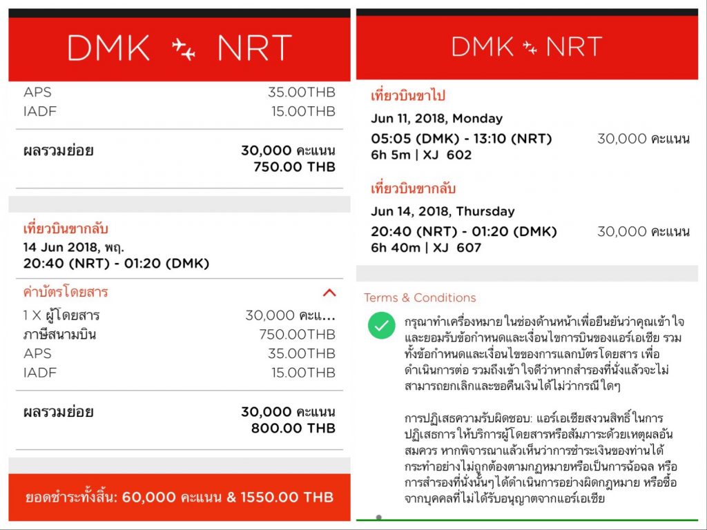 เมื่อเลือกจนเสร็จ App จะคำนวนให้เราว่าใช้คะแนนเท่าไหร่ และ จ่ายเงินเพิ่มอีกเท่าไหร่ หรือจริงๆไม่ต้องรอมีคะแนนครบก่อนแล้วค่อยแลกก็ได้ เพราะเราสามารถใช้ คะแนน + กับเงินตามจำนวนคะแนนที่ขาด ก็สามารถซื้อตั๋วเครื่องบินได้เช่นกัน หรือว่าตอนนี้สามารถใช้คะแนน BIG Points ที่มีแทนส่วนลดค่าตั๋วได้เลยบนเว็บไซต์ airasia.com ตอนจ่ายเงินค่าตั๋วก็ได้นะครับ
