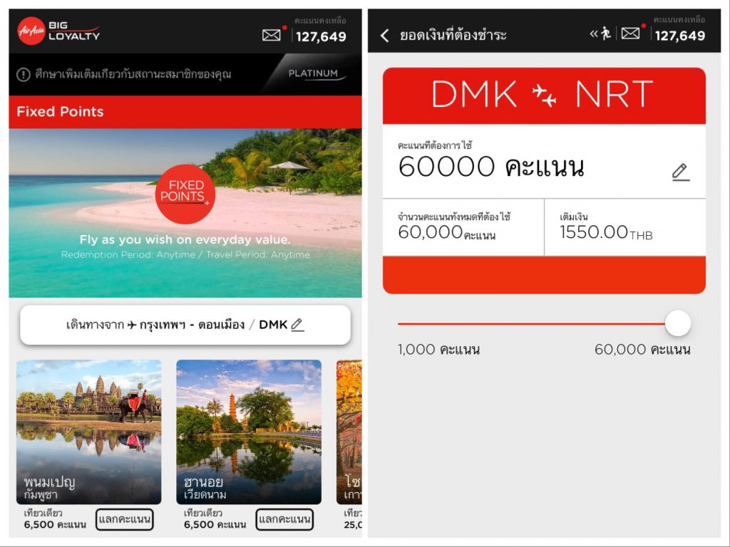 ถ้าเป็นการแลกคะแนนปกติจะเริ่มที่ขาละ 6,500 แต่ AirAsia BIG