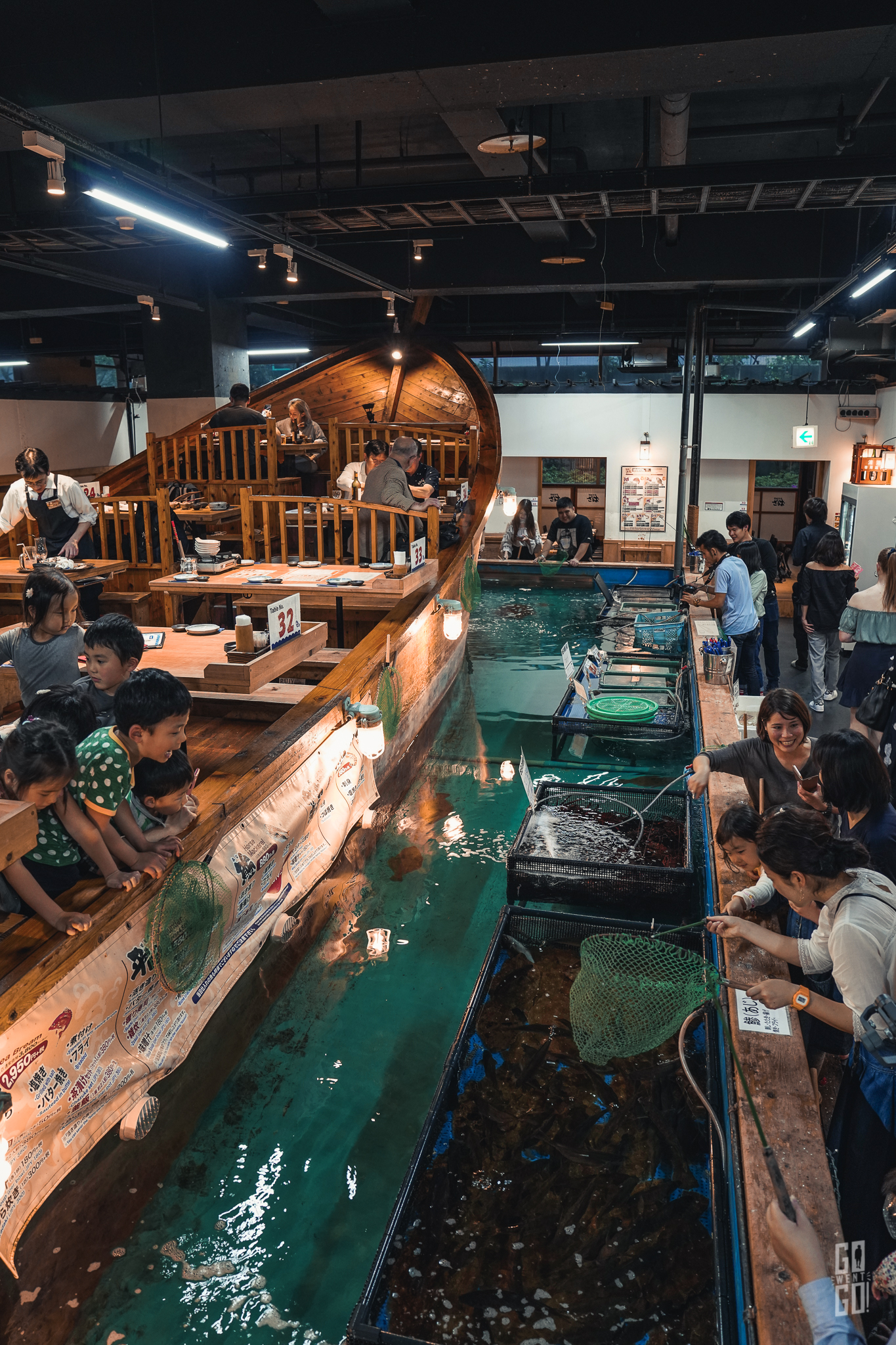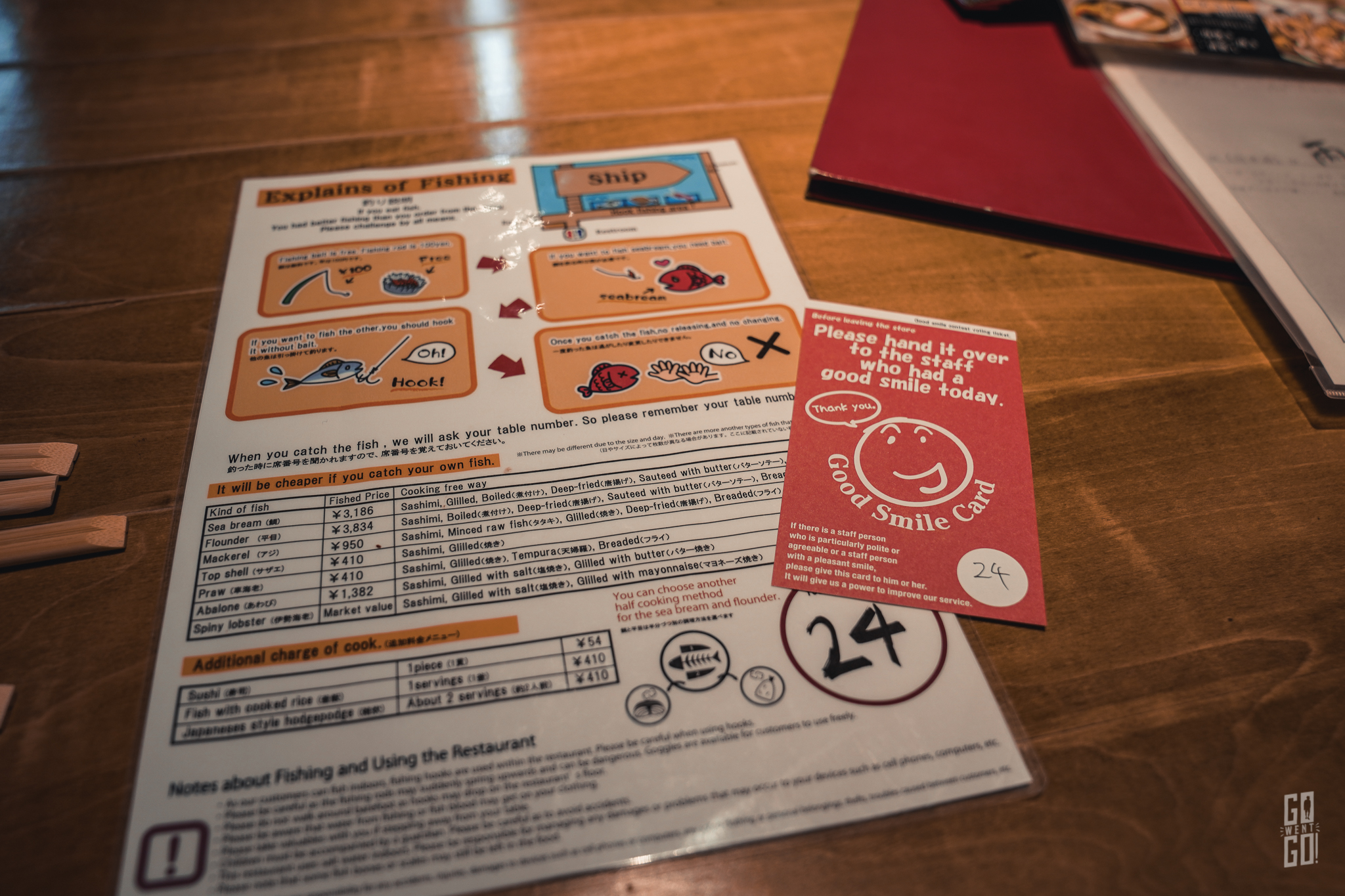 Hidden แรก ที่เราจะพาไปเป็นร้านอาหาร มีชื่อว่า Zauo fishing restaurant เป็นร้านอาหารทะเลสดๆ จะไม่สดได้ไงในเมื่อสิ่งที่เราอยากกินมันยังมีชีวิตอยู่ สิ่งที่พิเศษของร้านนี้ก็คือ เราสามารถตกปลา กุ้ง หอย ได้ด้วยตัวเอง ถ้าเราตกเอง ราคาอาหารจะถูกกว่าให้เขาตกมาทำให้(แอบมาบอกว่าถูกกว่า เกือบ 1,000เยนเลยนะ) โหวววววว มาขนาดนี้แล้วต้องตกเองสิ ค่าเบ็ทฟรี แต่ค่าเหยื่อ 100เยนนะจ้ะ พอเราตกได้แล้ว เราสามารถบอกเขาได้ว่าอยากให้ทำอาหารประเภทไหน ปิ้ง ย่าง ทอด ซาชิมิ ซุป หรือซูชิ และตัวนึงสามารถทำได้ 2อย่างด้วยนะ เยี่ยมสุด อิ่มสุดๆ ยัง ยังไม่หมด ร้านนี้เขาจะมีการ์ดแดงให้เรา ให้เราเอาให้กับพนักงานที่เราคิดว่ายิ้มสวยโดนใจเราที่สุด ร้านนี้ไม่ธรรมดาจริงๆ ทั้งอาหารและพนักงาน ฮ่าๆ