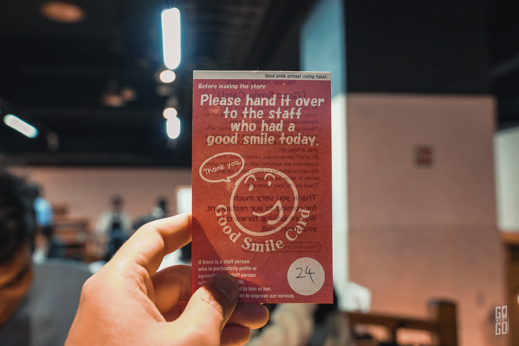 เป็นการ์ดที่เขาให้เราเอาไปให้กับพนักงานที่ยิ้มสวยที่สุด